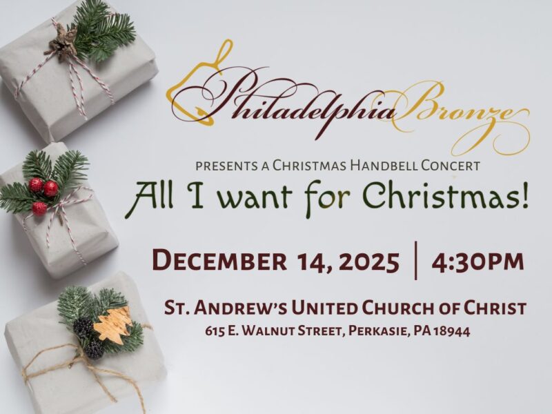 Philadelphia Bronze is coming to St. Andrew’s United Church of Christ, 615 E. Walnut St. Perkasie on Sunday, December 14, 2025. The concert begins at 4:30 PM. Tickets are $15. Reserve your tickets online by clicking here or by calling St. Andrew’s UCC office at 215-257-2880. Checks payable to St. Andrew’s UCC.